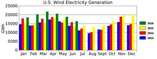| Keywords: US Wind Generation.svg translate yes en U S wind generation in GWh from http //www eia gov/electricity/monthly/index cfm Electric Power Monthly Table 1 1 A 2015-05-14 own Delphi234 other versions current monthly cc-zero Wind energy statistics of the United States |