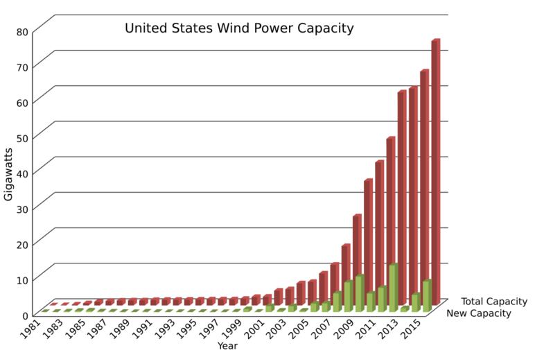 | Keywords: US wind power capacity.svg translate yes en Bar graph of installed wind power in the United States from 1981 to 2014 Data from 1981 to 1998 from http //awea org/projects/ AWEA archived at http //web archive org/web/20081006091136/http //awea org/projects/ Data from 1999 to 2013 from http //awea files cms-plus com/images/AWEA_AnnualReport_2013-Figure1 png AWEA U S Wind Industry Annual Market Report Year Ending 2013 2014-12-04 own Delphi234 other versions cc-zero Uploaded with UploadWizard Wind energy statistics of the United States |
