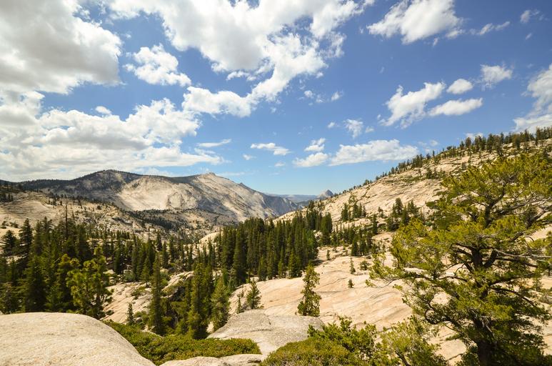 Keywords: usa america california rock yosemite summer sunny clouds cloudy trees