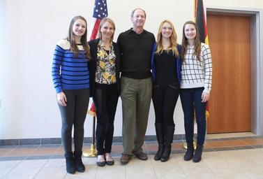 | Keywords: Usbotschaftberlin - Arrival of Ambassador-Designate John Emerson in Berlin 9514951471.jpg  Arrival of Ambassador-Designate John Emerson in Berlin The Emerson family From left to right Taylor Kimberly John Jackie Hayley Official http //www flickr com/photos/usbotschaftberlin/ U S Embassy in Berlin flickr account at http //www flickr com/photos/usbotschaftberlin/9514951471/ 9514951471 2013-08-15 U S Embassy in Berlin http //www usa gov/copyright shtml United States Government Work A work that is a United States Government work prepared by an officer or employee of the United States Government as part of that person's official duties is not subject to copyright in the United States and there are no U S copyright restrictions on reproduction derivative works distribution performance or display of the work Anyone may without restriction under U S copyright laws reproduce the work in copies in print or in digital form; prepare derivative works of the work; perform the work publicly; display the work; distribute copies or digitally transfer the work to the public by sale or other transfer of ownership or by rental lease or lending PD-USGov Personality rights John B Emerson family 20130815145500 Daughters Emerson Sisters Emerson |