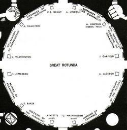 Keywords: USCapitolBuildingRotunda.jpg en Detail from a floor plan of the area around the Great Rotunda in the United States Capitol building in Washington D C The floor plan on this page is described by the source as The Rotunda second floor showing locations of paintings statues and busts North is to the right where the Senate wing of the Capitol is located ; the House of Representatives wing the southern end of the building is to the left The Portico on the East side of the Capitol where the Visitors Center is located and the direction of the U S Supreme Court building and Library of Congress is toward the bottom The Mall is toward the top Art of the United States Capitol page 426 The Rotunda second floor showing locations of paintings statues and busts Washington D C U S Government Printing Office 1978 Author ~ 1978 architecture United States Capitol rotunda Floor plans Washington D C in the 1970s United States Government Publishing Office publications PD-USGov |
