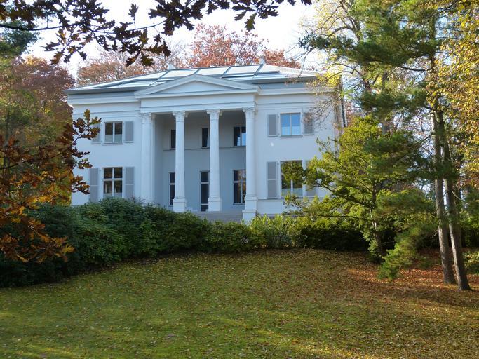 Keywords: usedom island island of usedom tourism western pomerania emperor's bath baltic sea northern germany heringsdorf hotel pension historically stay autumn facade pillar fall foliage architecture
