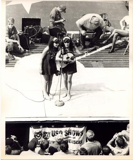 | Keywords: USO Show Vietnam 1968 - Jennie & Terrie Frankel Sing to Troops - Best resolution Heli pad.jpg en This 1968 photo of Terrie and Jennie Frankel singing and playing guitar during a USO Tour to Vietnam was taken on a Heli pad on a ship This image is best resolution 1 MB 1968 own TwinsofSedona other versions South Vietnam cc-zero Uploaded with UploadWizard United Service Organizations Jennie Frankel Terrie Frankel Vietnam War 1968 Doublemint Twins Gibson 12 String Guitar Twin sisters Identical twins Soldiers Folk Songs |