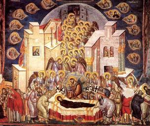 | Keywords: Uspenieto vo Perivlepta.jpg en Dormiton of the Theotokos Church of the Theotokos Peribleptos in Ohrid Macedonia ru Успение Ох ид Це ковь Богомате и Пе ивлепты 1294 1295 гг http //www pravmir ru/uspenie/images/dorm3 jpg author 1294-1295 PD-Macedonia Paintings in the Church of the Theotokos Peribleptos Frescos of Dormition of Virgin Mary |
