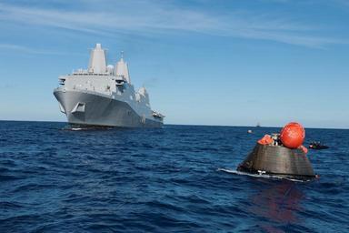 | Keywords: USS Anchorage moves toward Orion capsule after EFT-1.jpg en The U S Navy's USS Anchorage moves into place to recover NASA's Orion spacecraft following its splashdown in the Pacific Ocean Orion launched into space on a two-orbit 4 5-test flight at 7 05 am EST on Dec 5 and returned safely to Earth where a combined team from NASA the Navy and Orion prime contractor Lockheed Martin retrieved it for return to shore It's now being transported back to shore on board the Anchorage It is expected to be off loaded at Naval Base San Diego on Monday 2014-12-05 14 41 01 https //www flickr com/photos/nasaorion/15779785788/ U S Navy other versions DEFAULTSORT 20141205144101 Custom license marker 2015 01 01 PD-USGov-Military-Navy Landing and recovery of Exploration Flight Test-1 Taken with Nikon D3x Photographs taken on 2014-12-05 Uploaded with UploadWizard USS Anchorage LPD-23 |