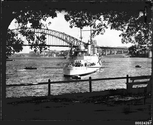 MAKE A MEME View Large Image This photograph depicts the warship USS ASTORIA, with the Sydney Harbour Bridge in the background. ASTORIA visited Sydney in August 1934 during its shakedown cruise of the Pacific. This photo is part of the Australian National Maritime ...