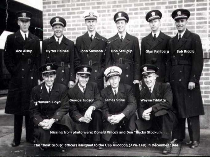 | Keywords: USS-Audubon Boat-Group-Officers Dec-1944.png en USS Audubon Boat Group Officers USS Audubon crew files USS Audubon crew 1944-12 PD-USGov-Military-Navy Haskell class attack transports World War II in 1944 People of the United States Navy Uniforms of the United States Navy |