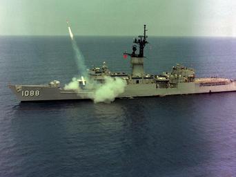 | Keywords: USS Barbey (FF-1088) launches Harpoon missiles in 1987.jpeg The U S Navy frigate USS Barbey FF-1088 firing two RGM-84 Harpoon missiles from the forward ASROC launcher in the Pacific Ocean in 1987 6439896 1987 PH2 Gunther USN PD-USGov USS Barbey FF-1088 RGM-84 Harpoon |