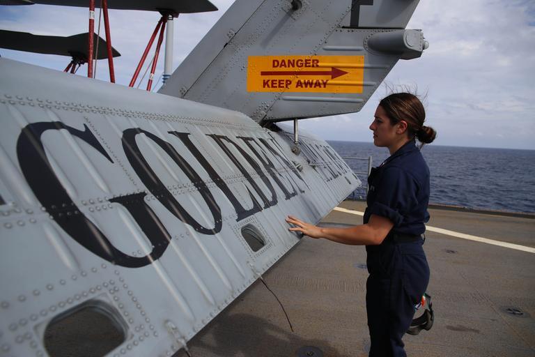 | Keywords: USS Blue Ridge 130622-N-NN332-051.jpg  en Aviation Structural Mechanic 2nd Class Erin Gallivan assigned to the Golden Falcons of Helicopter Sea Combat Squadron TWELVE Detachment ONE inspects an MH-60S Sea Hawk helicopter aboard U S 7th Fleet flagship USS Blue Ridge Blue Ridge is on patrol in the Indian Ocean with Marines from Fleet Antiterrorism Security Team Pacific and embarked 7th Fleet staff 2013-06-22 HSC-12 https //www dvidshub net/image/958964 130622-N-NN332-051 2013-06-22 07 30 USS BLUE RIDGE LCC 19 AT SEA PD-USGov-Military-Navy MH-60S Seahawk Fleet Anti-Terrorism Security Team Pacific USS Blue Ridge LCC-19 Images from DoD uploaded by Fæ |