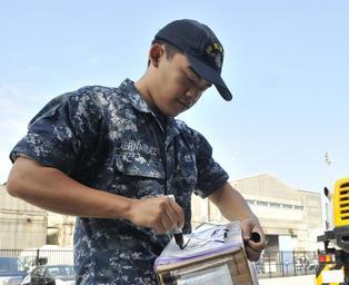 Keywords: USS Blue Ridge operations 150601-N-LG619-022.jpg en 150601-N-LG619-022 YOKOSUKA Japan June 1 2015 - Logistics Specialist Seaman Gemchristian Fernandez attached to U S 7th Fleet flagship USS Blue Ridge LCC 19 writes processing information on a box during a supply on load on the pier Blue Ridge is undergoing a brief maintenance period in preparation for future patrols within the 7th Fleet area of operations U S Navy photo by Mass Communication Specialist 1st Class Mike Story/Released 2015-06-01 Petty Officer 1st Class Michael Story https //www dvidshub net/image/1968823 150601-N-LG619-022 2015-06-01 21 44 YOKOSUKA USS BLUE RIDGE JP PD-USGov-Military-Navy USS Blue Ridge LCC-19 Images from DoD uploaded by Fæ |