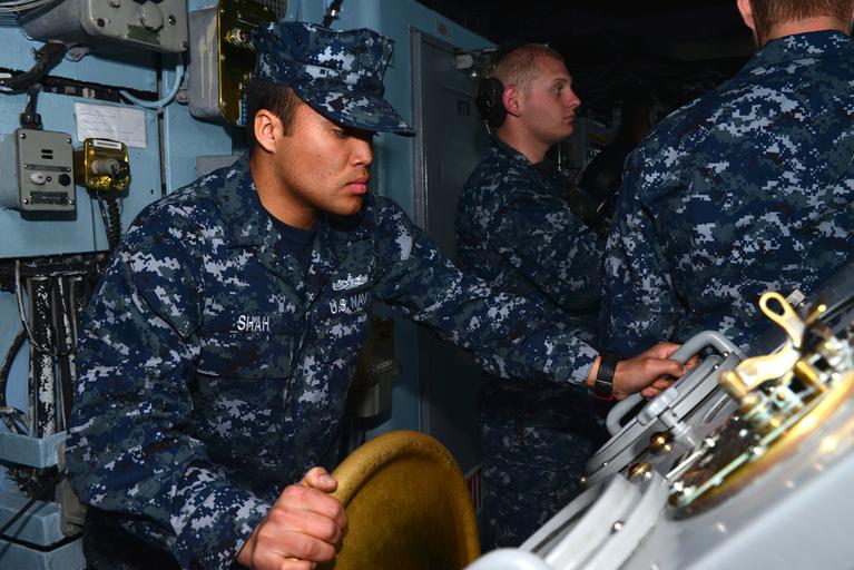 Keywords: USS Blue Ridge operations 140328-N-KL617-021.jpg en Boatswain's Mate 3rd Class Saurya Shah mans the helm as U S 7th Fleet flag ship USS Blue Ridge LCC 19 returns to Yokosuka after a 30-day patrol While on patrol Blue Ridge visited Busan Republic of South Korea Hong Kong and Manila Philippines with embarked 7th Fleet staff Helicopter Sea Combat Squadron 12 and Marines from Fleet Anti-terrorism Security Team Pacific U S Navy photo by Mass Communication Specialist 3rd Class Kelby Sanders Unit Defense Imagery Management Operations Center DVIDS Tags sea; japan; blue ridge; anchor; DIMOC; DVIDS Bulk Import 2014-03-28 Petty Officer 3rd Class Kelby Sanders https //www dvidshub net/image/1580003/uss-blue-ridge-operations 140328-N-KL617-021 2014-10-04 01 20 YOKOSUKA JP PD-USGov-Military-Navy Fleet Anti-Terrorism Security Team Pacific USS Blue Ridge LCC-19 Images from DoD uploaded by Fæ |