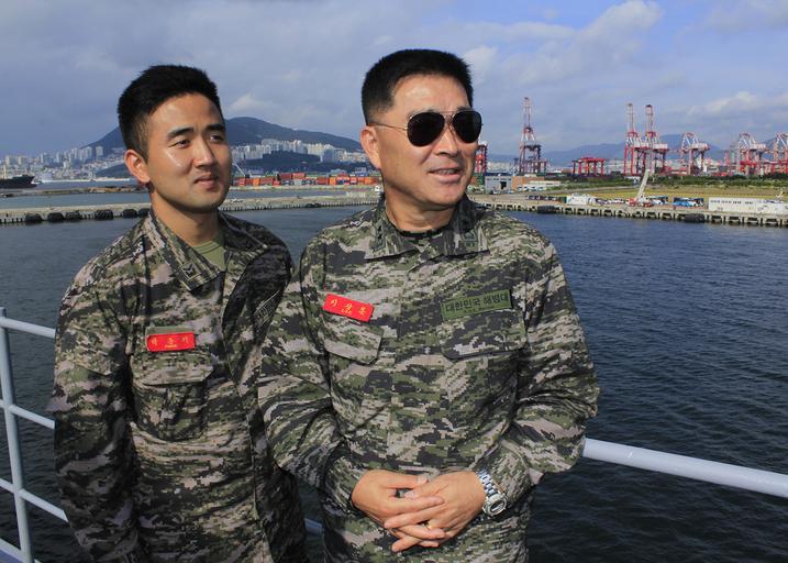 | Keywords: USS Blue Ridge port visit in South Korea 130829-N-JY673-010.jpg en Staff Sgt Junki Park and Assistant Commandant of the Republic of Korea Marine Corps Brig Gen Sanghoon Lee arrive in their home port of Busan after a successful completion of Ulchi Freedom Guardian an exercise between the U S and Republic of Korea Blue Ridge port visits represent an opportunity to promote peace and stability in the Indo-Asia-Pacific region demonstrate commitment to regional partners and foster growing relationships 2013-08-29 left https //www dvidshub net/image/1006208 130829-N-JY673-010 2013-08-29 21 00 BUSAN KR PD-USGov-Military-Navy USS Blue Ridge LCC-19 Images from DoD uploaded by Fæ |