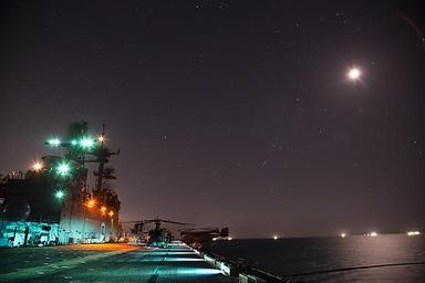 Keywords: USS Bonhomme Richard operations 150326-N-GG858-018.jpg en 150326-N-GG858-018 WATERS EAST OF THE KOREAN PENINSULA March 26 2015 Forward-deployed amphibious assault ship USS Bonhomme Richard LHD 6 steams through the East China Sea at night Bonhomme Richard is the lead ship of the Bonhomme Richard Amphibious Ready Group ARG and along with the embarked 31st Marine Expeditionary Unit MEU is currently underway in the 7th Fleet Area of Operations U S Navy photo by Mass Communication Specialist 2nd Class Matthew Dickinson/ Released 2015-03-26 Petty Officer 2nd Class Matthew Dickinson https //www dvidshub net/image/1842372 150326-N-GG858-018 2015-03-27 21 36 USS BONHOMME RICHARD WATERS EAST OF THE KOREAN PENINSULA AT SEA PD-USGov-Military-Navy 31st Marine Expeditionary Unit USS Bonhomme Richard LHD-6 Images from DoD uploaded by FĂŚ |