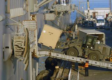 | Keywords: USS Bonhomme Richard Resupply DVIDS48793.jpg en Sailors aboard amphibious assault ship USS Bonhomme Richard LHD 6 load stores and equipment into the ship's upper vehicle storage through the starboard side port Bonhomme Richard took on supplies and equipment in Bahrain in case U S forces are called upon to assist in humanitarian assistance or disaster relief efforts in areas affected by tropical cyclone Gonu 2007-06-07 Emmanuel Rios https //www dvidshub net/image/48793 070607-N-+++++-039 2007-07-01 14 22 MANAMA BH PD-USGov-Military-Navy Manama USS Bonhomme Richard LHD-6 Images from DoD uploaded by Fæ |