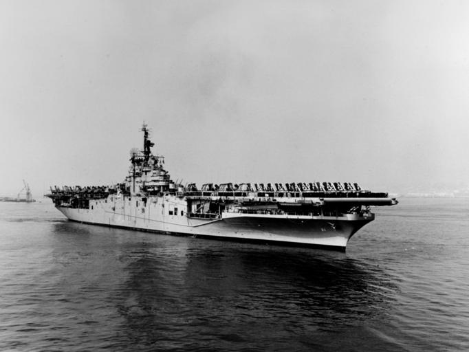 | Keywords: USS Boxer (CVA-21) in port in 1954.jpg  states that the photo was taken on 18 November 1953 However Boxer returned from the Western Pacific on 28 November 1953 with Air Task Group 1 ATG-1 None of the squadrons of ATG-1 were equipped with the Grumman F9F-6 Cougar that are parked on the forward flight deck The swept-wing version of the F9F Panther arrived to late to participate in the Korean War and Boxer had left the U S West Coast already on 30 March 1953 the war ended on 27 July 1953 During her next deployment from 3 March to 11 October 1954 the embarked Carrier Air Group 12 CVG-12 had two squadrons equipped with the F9F-6 Also by early 1955 the SK-2 radar antenna visible on the island been replaced by SPS-6B See also http //www navsource org/archives/02/21 htm Official U S Navy photo http //www history navy mil/our-collections/photography/numerical-list-of-images/nhhc-series/nh-series/NH-67000/NH-67430 html NH 67430 from the U S Navy http //www history navy mil Naval History and Heritage Command 1954 U S Navy PD-USGov-Military-Navy original upload log page en wikipedia Uss_boxer_cva-21 jpg 2004-02-05 05 26 RadicalBender 300×182×8 9730 bytes The Aircraft Carrier USS Boxer CVA-21 Public domain photo from history navy mil USS Boxer CV-21  |