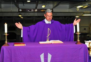 | Keywords: USS Carl Vinson operations 100307-N-XK347-010.jpg en On board USS Carl Vinson a Canadian Capt Rory MacDonald a Catholic Chaplain visiting as part of an exchange program with Canada leads prayer during Catholic Mass in the ship's forecastle March 7 The ship is underway in support of Southern Seas 2010 a major component of Commander U S Naval Forces Southern Command Partnership of the Americas maritime engagement strategy and theater security cooperation activities to enhance regional stability and strengthen relationships among regional partners 2010-03-07 CVN 70 https //www dvidshub net/image/1338680 100307-N-XK347-010 2014-05-14 08 06 AT SEA PD-USGov-Military-Navy USS Carl Vinson CVN-70 Southern Seas 2010 Images from DoD uploaded by Fæ |
