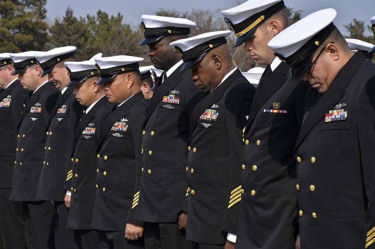 Keywords: USS Frank Cable action 150316-N-EV320-019.jpg en BUSAN Republic of Korea - Sailors assigned to the submarine tender USS Frank Cable bow their heads in a moment of silence dedicated to those who lost their lives in the Korean War at the United Nations Memorial Cemetery Korea in Busan Republic of Korea March 16 The memorial cemetery contains 2 300 graves of the United Nations Command service members who died in the Korean War Frank Cable is in Busan for a port visit that has included various community service events and military to military engagements designed to strengthen partnership with the Republic of Korea navy Frank Cable forward deployed to the island of Guam conducts maintenance and support of submarines and surface vessels deployed to the U S 7th Fleet area of responsibility and is currently on a scheduled underway period 2015-03-16 March 16 2015 https //www dvidshub net/image/1824741 150316-N-EV320-019 2015-03-20 00 00 26 KR PD-USGov-Military-Navy USS Frank Cable AS-40 Images from DoD uploaded by Fæ United Nations Memorial Cemetery Moment of silence |