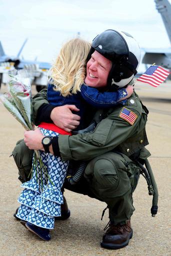 Keywords: USS George H.W. Bush homecoming 141114-N-IS680-086.jpg en Cmdr Raymond Barnes executive officer of Strike Fighter Squadron VFA 87 holds his daughter during the squadron's homecoming at Naval Air Station Oceana VFA-87 along with other squadrons from Carrier Air Wing CVW 8 returned home after a nine-month deployment aboard the aircraft carrier USS George H W Bush CVN 77 U S Navy photo by Mass Communication Specialist 2nd Class Alysia R Hernandez/Released 2014-11-14 Petty Officer 2nd Class Alysia Hernandez https //www dvidshub net/image/1663480 141114-N-IS680-086 2014-11-18 22 40 VIRGINIA BEACH VA US 4 PD-USGov-Military-Navy People at Naval Air Station Oceana USS George H W Bush CVN-77 Images from DoD uploaded by Fæ |