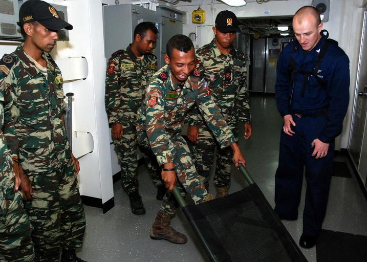 | Keywords: USS Green Bay 121011-N-BB534-418.jpg en Seaman Armando Garcia a sailor with the Timor-Leste Defense Force F-FDTL assembles a stretcher during a tour of the medical department aboard amphibious transport dock ship USS Green Bay LPD 20 Green Bay is currently participating in Exercise Crocodilo 2012 a multilateral exercise that promotes partnership through community service and training with the F-FDTL U S Navy Photo by Mass Communication Specialist 1st Class SW/AW Elizabeth Merriam 2012-10-11 Petty Officer 2nd Class Elizabeth Merriam https //www dvidshub net/image/721944 121011-N-BB534-418 2012-10-14 09 00 BANDA SEA AT SEA PD-USGov-Military-Navy USS Green Bay LPD-20 Images from DoD uploaded by Fæ |
