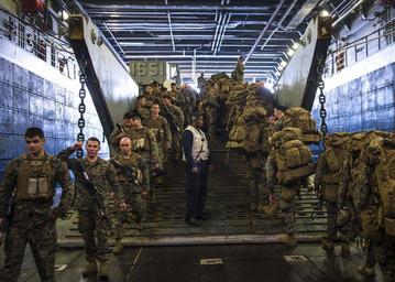 | Keywords: USS Green Bay operations 150328-N-KE519-028.jpg en 150328-N-KE519-028 WATERS TO THE EAST OF THE KOREAN PENINSULA March 28 2015 - Marines attached to the 31st Marine Expeditionary Unit MEU embark Landing Craft Unit LCU 1651 attached to Naval Beach Unit NBU 7 before departing the amphibious transport dock ship USS Green Bay LPD 20 U S Sailors and Marines from the Bonhomme Richard Amphibious Ready Group ARG and the 31st Marine Expeditionary Unit are participating in the Korean Marine Exchange Program KMEP in the Republic of Korea ROK with the ROK Marine Corps and Navy The Bonhomme Richard ARG is comprised of the amphibious assault ship USS Bonhomme Richard LHD 6 the amphibious transport dock ship USS Green Bay LPD 20 the Whidbey Island-class amphibious dock landing ship USS Ashland LSD 48 and the embarked 31st MEU U S Navy photo by Mass Communication Specialist 3rd Class Edward Guttierrez III/Released 2015-03-28 Petty Officer 3rd Class Edward Guttierrez III https //www dvidshub net/image/1844381 150328-N-KE519-028 2015-03-30 02 30 USS GREEN BAY WATERS TO THE EAST OF THE KOREAN PENINSULA AT SEA PD-USGov-Military-Navy 31st Marine Expeditionary Unit USS Ashland LSD-48 USS Bonhomme Richard LHD-6 USS Green Bay LPD-20 Images from DoD uploaded by Fæ |