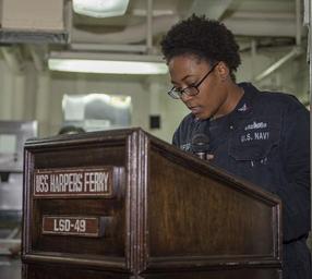 Keywords: USS Harpers Ferry operations 160328-N-VS214-096.jpg en 160328-N-VS214-096 PACIFIC OCEAN Yeoman 3rd Class Ebony Shuford talks about female role models during a presentation on Women ™s History Month in the mess decks on board dock landing ship USS Harpers Ferry The Boxer Amphibious Ready Group 13th Marine Expeditionary Unit team is conducting operations in the U S 7th Fleet area of operations during a scheduled deployment in support of security and stability in the Indo-Asia-Pacific region <br>Unit Navy Public Affairs Support Element West 2016-03-28 March 28 2016 https //www dvidshub net/image/2490977/uss-harpers-ferry-operations 160328-N-VS214-096 2016-03-29 09 21 USS HARPERS FERRY PACIFIC OCEAN PD-USGov-Military-Navy 13th Marine Expeditionary Unit Women's History Month Images from DoD uploaded by Fæ |