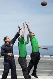 | Keywords: USS Harry S. Truman activity 150525-N-MQ094-239.jpg en 150525-N-MQ094-239 ATLANTIC OCEAN May 25 2015 Sailors leap to catch a football on the flight deck of aircraft carrier USS Harry S Truman CVN 75 on Memorial Day Truman is currently conducting sea trials an at-sea shipboard testing of systems and equipment following a successful condensed incremental maintenance period U S Navy photo by Mass Communication Specialist 3rd Class E T Miller/Released Unit Navy Media Content Services DVIDS Tags NMCS; DVIDS Bulk Import 2015-05-25 Ethan T Miller https //www dvidshub net/image/2064863/uss-harry-s-truman-activity 150525-N-MQ094-239 2015-07-17 17 03 USS HARRY S TRUMAN ATLANTIC OCEAN PD-USGov-Military-Navy USS Harry S Truman CVN-75 Images from DoD uploaded by Fæ |
