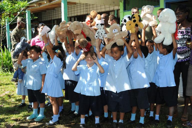 Keywords: USS Iwo Jima DVIDS313319.jpg en Children from Hone Creek primary school hold up stuffed animals given to them by service members embarked aboard the amphibious assault ship USS Iwo Jima and members of the non-government organization Give a Kid a Backpack during a Continuing Promise 2010 community service project The assigned medical and engineering staff embarked aboard Iwo Jima are working with partner nation teams to provide medical dental veterinary and engineering assistance in eight nations 2010-08-25 LHD 7 https //www dvidshub net/image/313319 100825-N-+++++-029 2010-08-28 05 01 LIMON L CR PD-USGov-Military-Navy Continuing Promise 2010 Images from US Navy location Iwo Jima Japan Images from DoD uploaded by Fæ |