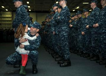 Keywords: USS John C. Stennis (CVN 74) operations 151209-N-BR087-012.jpg en 151209-N-BR087-012 BREMERTON Wash Dec 9 2015 - Machinist's Mate 1st Class John Rasmussen from Sacramento Calif hugs his daughter Lillian during a frocking ceremony in USS John C Stennis' CVN 74 hangar bay Stennis' crew is currently in port training for future deployments U S Navy photo by Mass Communication Specialist Seaman Apprentice Cole C Pielop /Released <br>Unit USS John C Stennis CVN 74 2015-12-09 Seaman Apprentice Cole Pielop https //www dvidshub net/image/2323693/uss-john-c-stennis-cvn-74-operations 151209-N-BR087-012 2015-12-09 16 23 BREMERTON WA US PD-USGov-Military-Navy USS John C Stennis CVN-74 Images from DoD uploaded by Fæ |