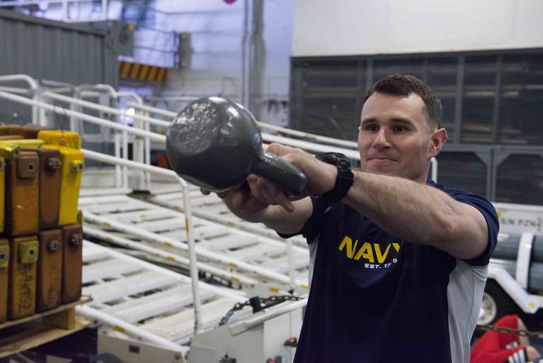 Keywords: USS John C. Stennis operations 160122-N-BR551-084.jpg en 160122-N-BR551-084 PACIFIC OCEAN Jan 22 2016 - Hospital Corpsman 3rd Class Christopher Wood from Birmingham Ala swings a kettle bell in USS John C Stennis' CVN 74 hangar bay Providing a combat-ready force to protect collective maritime interests Stennis is operating as part of the Great Green Fleet in the U S 3rd Fleet area of operations on a regularly scheduled Western Pacific deployment U S Navy photo by Mass Communication Specialist Seaman Dakota Rayburn / Released <br>Unit USS John C Stennis CVN 74 2016-01-22 Seaman Apprentice Justin Rayburn https //www dvidshub net/image/2367779/uss-john-c-stennis-operations 160122-N-BR551-084 2016-01-23 20 12 USS JOHN C STENNIS PACIFIC OCEAN PD-USGov-Military-Navy USS John C Stennis CVN-74 Images from DoD uploaded by Fæ |