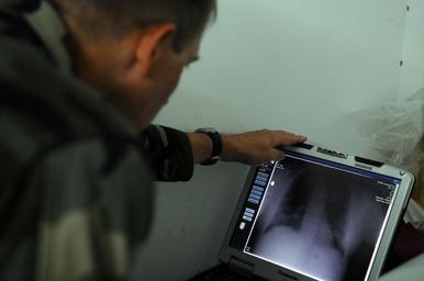 Keywords: USS Kearsarge Continuing Promise 08 DVIDS124747.jpg en Capt Tim Shope embarked aboard the amphibious assault ship USS Kearsarge reviews X-rays during surgical screenings at the Arima District Health Facility as part of the partnership between Continuing Promise 08 and Trinidad-Tobago Kearsarge is the primary platform for the Caribbean phase of the humanitarian/civic assistance mission CP 08 an equal-partnership mission involving the United States Canada the Netherlands Brazil Nicaragua Colombia Dominican Republic Trinidad and Tobago and Guyana 2008-10-25 https //www dvidshub net/image/124747 081025-N-+++++-075 2008-10-27 18 18 ARIMA TT PD-USGov-Military-Navy USS Kearsarge LHD-3 Images from DoD uploaded by Fæ |