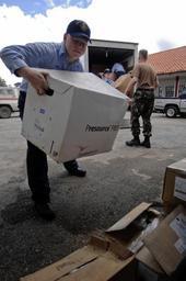 Keywords: USS Kearsarge Continuing Promise 08 DVIDS124472.jpg en Petty Officer 2nd Class Thomas Harrald embarked aboard the amphibious assault ship USS Kearsarge unloads a truck with donations from Project Hand Clasp to the Suffisantweg Red Cross Center as part of a the humanitarian service project Continuing Promise 08 Kearsarge is supporting the Caribbean phase of CP an equal-partnership mission between the United States Canada the Netherlands Brazil Nicaragua Colombia Dominican Republic Trinidad and Tobago and Guyana 2008-10-21 Petty Officer 2nd Class Erik Barker https //www dvidshub net/image/124472 081021-N-+++++-003 2008-10-25 15 34 WILLEMSTAD CW PD-USGov-Military-Navy USS Kearsarge LHD-3 Images from DoD uploaded by Fæ |