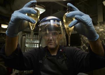 Keywords: USS Makin Island activity 150113-N-GT710-071.jpg en Gas Turbine System Technician Mechanical 2nd Class Jon McKissack from Yucaipa Calif examines a fuel sample for bottom sediment and water in the oil lab aboard amphibious assault ship USS Makin Island LHD 8 Makin Island the flagship of the Makin Island Amphibious Ready Group is deployed with the 11th Marine Expeditionary Unit to promote peace and freedom of the seas by providing security and stability in the 7th Fleet area of responsibility U S Navy photo by Mass Communication Specialist 2nd Class Lawrence Davis/Released 2015-01-13 Petty Officer 3rd Class Lawrence James Davis III https //www dvidshub net/image/1743431 150113-N-GT710-071 2015-01-30 06 56 INDIAN OCEAN AT SEA PD-USGov-Military-Navy USS Makin Island LHD-8 11th Marine Expeditionary Unit Images from DoD uploaded by Fæ |