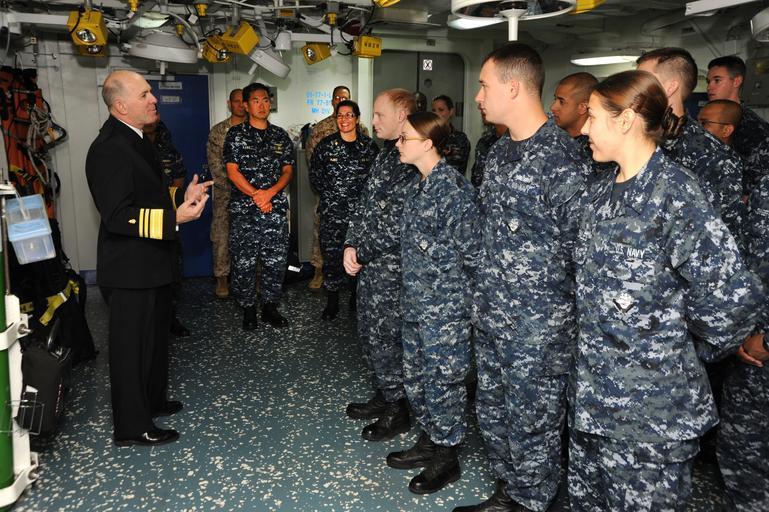 Keywords: USS Makin Island participates in San Francisco Fleet Week 121005-N-UE944-012.jpg en Vice Adm Matthew Nathan surgeon general of the Navy and chief of the Navy's Bureau of Medicine and Surgery meets with medical department sailors aboard the amphibious assault ship USS Makin Island LHD 8 during San Francisco Fleet Week 2012 SFFW 12 is scheduled from Oct 3-8 and brings more than 2 500 sailors Marines and Coast Guardsmen from four ships to the city of San Francisco in order to highlight the personnel technology and capabilities of the sea services The U S Navy has a 237-year heritage of defending freedom and projecting and protecting U S interests around the globe Join the conversation on social media using warfighting U S Navy photo by Mass Communication Specialist 1st Class Andrew D Wiskow 2012-10-05 Andrew Wiskow https //www dvidshub net/image/719508 121005-N-UE944-012 2012-10-11 05 37 SAN FRANCISCO CA US PD-USGov-Military-Navy USS Makin Island LHD-8 Images from DoD uploaded by Fæ Matthew L Nathan |