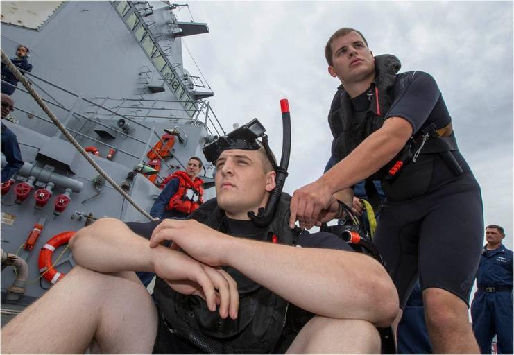Keywords: USS Mason sailors train during man overboard drill 130723-N-PW661-006.jpg en Fire Controlman 3rd Class Sean Higgins attaches a safety line to the harness of Fire Controlman 3rd Class Douglas O ™Neil before entering the water during a man overboard drill aboard guided-missile destroyer USS Mason DDG 87 Mason is deployed as part of the Harry S Truman Carrier Strike Group and will be supporting maritime security operations and theater security cooperation efforts in the U S 6th and 5th Fleet areas of operation 2013-07-23 Petty Officer 3rd Class Rob Aylward https //www dvidshub net/image/981168 130723-N-PW661-006 2013-07-25 19 15 USS MASON AT SEA PD-USGov-Military-Navy USS Mason DDG-87 Images from DoD uploaded by Fæ |