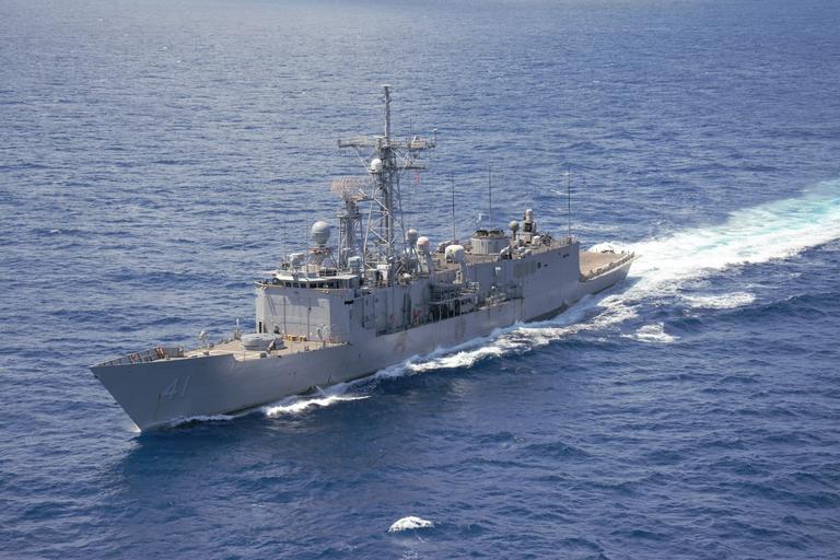| Keywords: USS McClusky (FFG-41) at sea in August 2014.JPG en The U S Navy frigate USS McClusky FFG-41 underway during Operation Martillo in the U S 4th Fleet area of responsibility in the Pacific Ocean The exercise is a U S European and Western Hemisphere partner nation effort launched in January 2012 targeting illicit trafficking routes in coastal waters along the Central American isthmus 2014-08-29 140829-N-AW702-002 Navy http //www navy mil/view_image asp id 183732 U S Navy photo by Mass Communication Specialist 1st Class Jacob Sippel PD-USGov-Military-Navy USS McClusky FFG-41 Operation Martillo |