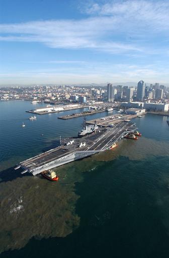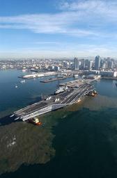 Keywords: USS Midway (CV-41) decommissioned.jpg Caption 040110-N-5362A-008 San Diego Calif Jan 10 2004 -- The decommissioned aircraft carrier Midway prepares to moor at its final resting place at Navy pier where it will become the largest museum devoted to carriers and naval aviation The ship was temporarily moored at Naval Air Station North Island this past week so that preparations could be made to formally present the aircraft carrier to the city of San Diego When commissioned on September 10 1945 as USS Midway CVB 41 she was the largest carrier ever put to sea U S Navy photograph by Photographer's Mate 1st Class Arlo K Abrahamson RELEASED Source http //www news navy mil/view_single asp id 11332 copied from english wikipedia PD-USGov-Military-Navy USS Midway CV-41 |