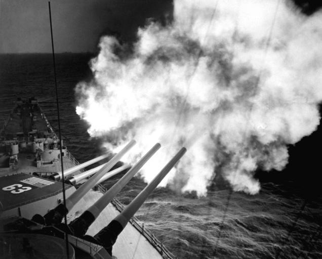 Keywords: USS Missouri at Hungman.jpg en The USS Missouri fires 16-inch shell into enemy lines at Hungnam A 16-inch 3-gun salvo is on its way to commies December 26 1950 Navy NARA FILE 080-G-426954 WAR CONFLICT BOOK 1445 Cleared for public release This image is generally considered in the public domain - Not for commercial use U S Army Korea - Installation Management Command flickr http //www flickr com/photos/imcomkorea/2919524193/in/set-72157607808414225/ United States Navy 1950-12-26 520788 PD-USGov-Military-Navy Weapons and weapons' stations on the USS Missouri BB-63 1944-1955 Firing naval artillery Black and white photographs 16 /50 caliber Mark 7 gun Naval shore bombardment in the Korean War |