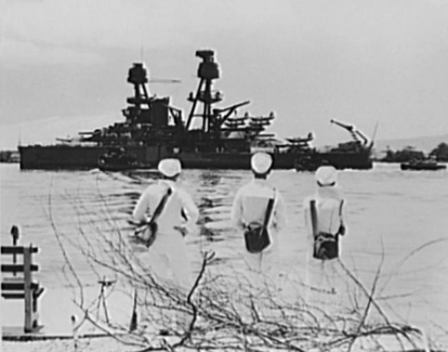 | Keywords: USS Nevada leaving for repair edited.jpg en Severely damaged and beached during the Japanese attack on Pearl Harbor the USS Nevada gets ready to leave her Hawaiian anchorage for permanent repairs at a U S port Temporary repairs made at Pearl Harbor enabled the battleship to make the voyage under her own power LOC-image fsa 8b05021 Farm Security Administration - Office of War Information Photograph Collection Library of Congress 1942-12 File USS Nevada leaving for repair jpg original negative ; Cropped and rotated from File USS Nevada leaving for repair jpg; converted to jpg format from the original photographic negative PD-USGov USS Nevada BB-36 Pearl Harbor in World War II |