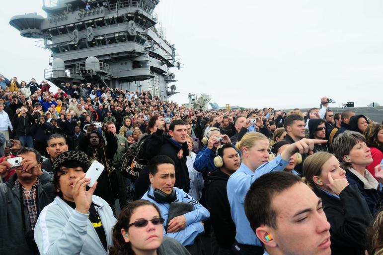 Keywords: USS Nimitz Friends and Family Day Cruise 090321-N-ND508-014.jpg en Crew members aboard the aircraft carrier USS Nimitz and their guests observe an air show from the flight deck during a Friends and Family Day Cruise Friends and Family Day Cruise is a community outreach event held underway to give family and friends a chance to experience life aboard a U S Navy ship Unit Defense Imagery Management Operations Center DVIDS Tags DIMOC; USS Nimitz; U S Navy; DVIDS Bulk Import 2009-03-21 CVN 68 https //www dvidshub net/image/1275742/uss-nimitz-friends-and-family-day-cruise 090321-N-ND508-014 2014-04-26 15 53 USS NIMITZ AT SEA PD-USGov-Military-Navy USS Nimitz CVN-68 Images from DoD uploaded by Fæ |