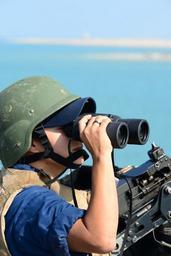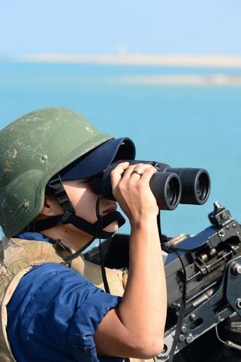 | Keywords: USS Nitze sailor stands lookout 140630-N-AT101-111.jpg en U S Navy Internal Communications Technician 2nd Class Ariana Robledo assigned to the guided-missile destroyer USS Nitze DDG 94 stands lookout watch as the ship transits the Suez Canal Egypt June 30 2014 The Nitze was conducting naval operations in the U S 6th Fleet area of operations in support of U S national security interests in Africa U S Navy photo by Mass Communication Specialist 1st Class Maddelin Angebrand 2014-06-30 Petty Officer 2nd Class Maddelin Angebrand https //www dvidshub net/image/1579332 140630-N-AT101-111 2014-09-29 16 14 SUEZ CANAL EG PD-USGov-Military-Navy USS Nitze DDG-94 Images from DoD uploaded by Fæ |