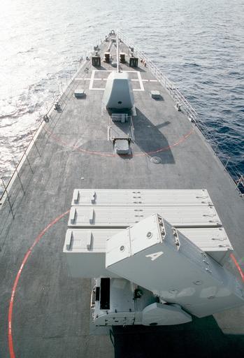 | Keywords: unknown outdoor 330-CFD-DN-ST-92-02181: A view of the bow of the destroyer USS O'Bannon (DD 987), showing the ship's Mark 16 8-cell ASROC anti-submarine rocket launcher, foreground, and a Mark 45 5-inch/54-caliber gun. The O'Bannon is one of the US Navy ships taking part in UNITAS XXXII, a combined exercise involving the naval forces of the United States and nine South American countries, 7/13/1991PH2 Johnny D. Bivera. (OPA-NARA II-8/16/2015). 330-CFD-DN-ST-92-02181: A view of the bow of the destroyer USS O'Bannon (DD 987), showing the ship's Mark 16 8-cell ASROC anti-submarine rocket launcher, foreground, and a Mark 45 5-inch/54-caliber gun. The O'Bannon is one of the US Navy ships taking part in UNITAS XXXII, a combined exercise involving the naval forces of the United States and nine South American countries, 7/13/1991PH2 Johnny D. Bivera. (OPA-NARA II-8/16/2015). 330-CFD-DN-ST-92-02181: A view of the bow of the destroyer USS O'Bannon (DD 987), showing the ship's Mark 16 8-cell ASROC anti-submarine rocket launcher, foreground, and a Mark 45 5-inch/54-caliber gun. The O'Bannon is one of the US Navy ships taking part in UNITAS XXXII, a combined exercise involving the naval forces of the United States and nine South American countries, 7/13/1991PH2 Johnny D. Bivera. (OPA-NARA II-8/16/2015). unknown |