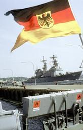 | Keywords: USS O'Bannon (DD-987) at Kiel in 1992.jpeg The U S Navy destroyer USS O'Bannon DD-987 approaches a quay in Kiel Germany during BALTOPS '92 The German Navy ensign flies from the stern of the destroyer Mölders D186 in the foreground 6480565 1992-06-01 Cdr Norris Jones USN PD-USGov USS O'Bannon DD-987 BALTOPS 1992 Naval ensigns of Germany |