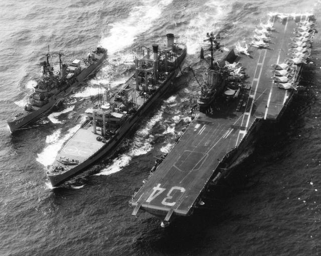 | Keywords: USS Oriskany (CVA-34) and USS Morton (DD-948) replenishment 1974.jpeg The U S Navy aircraft carrier USS Oriskany CVA-34 and the destroyer USS Morton DD-948 conduct underway replenishment from an Ashtabula-class oiler in the Pacific Ocean Oriskany was deployed with Carrier Air Wing 19 CVW-19 to the Western Pacific and Vietnam from 18 October 1973 to 5 June 1974 http //collections naval aviation museum/emuwebdoncoms/pages/doncoms/AdvQuery php U S Navy National Museum of Naval Aviation photo No http //collections naval aviation museum/emuwebdoncoms/pages/doncoms/Display php irn 29682 QueryPage 2Femuwebdoncoms 2Fpages 2Fdoncoms 2FAdvQuery php 1996 488 196 025 ca 1974-03 U S Navy PD-USGov-Military-Navy USS Oriskany CV-34 USS Morton DD-948 Ashtabula class oiler |