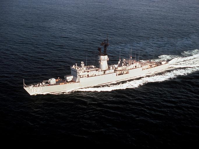 | Keywords: USS Patterson (DE-1061) underway in 1970.jpeg The U S Navy ocean escort USS Patterson DE-1061 underway in Narragansett Bay Rhode Island USA 27 August 1970 The photo illustrates the original Knox-class frigate its armament consiting only of a single 127 mm/54 gun and an ASROC-launcher earning nicknames like MacNamara's folly A FRAM I-modernized Gearing-class destroyer was smaller but was armed with four 127 mm/38 guns and carried the QH-50 DASH drone The Knox-class frigates were later upgraded and the never used DASH-landing deck was converted to accomodate the LAMPS I-helicopters A Mk 25 BPDMS Sea Sparrow-launcher was added aft later replaced by a Phalanx CIWS 6458137 1970-08-27 PHCS W H Long USN PD-USGov-Military-Navy USS Patterson FF-1061 |