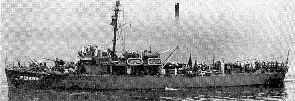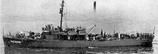 Keywords: USS PC-1598.jpg en With her new hull number already applied PC-1598 displays the armament fitted to the Pacific units by Norfolk Navy Yard Forward of the 3-inch gun are two 12-round Mk 22 Mousetrap antisubmarine rocket launchers and two Mk 6 depth-charge mortars are mounted just abaft the newly installed 40-mm Mk 3 antiaircraft gun The original Mk 7 depth-charge racks have been replaced with Mk 9s with racks for reload charges fitted between them The five 20-mm antiaircraft mounts are fitted two on the main deck aft two abreast the foremast and one atop the pilothouse Note the crow's nest lookout position still fitted on the mast http //www navsource org/archives/12/011598 htm U S Navy photo from the August 2002 edition of Naval History magazine date PD-USGov-Military-Navy Ships built in New York Ships built in 1942 World War II minesweepers of the United States Patrol vessels of the United States Minesweepers of the United States Crow's nest |