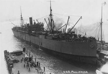 Keywords: USS Philippines (ID-1677).jpg en The troop transport USS Philippines ID-1677 in port with the 803rd Pioneer Battalion aboard The source states the ship is from Brest France but does not identify the port in which the photo was taken http //www loc gov/pictures/item/2010651621/ Photo LC-DIG-ppmsca-11460 Library of Congress Prints and Photographs Online Catalogue U S Navy 1919 PD-USGov-Military-Navy Transports of the United States Navy |