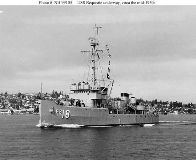 Keywords: USS Requesite (AGS 18).jpg en USS Requesite AGS 18 underway circa the mid-1950s U S Navy photo NH 99105 http //www navsource org/archives/11/02109 htm U S Navy photo NH 99105 mid other_date s 1950 Auk class minesweeper Survey ships of the United States Navy PD-USGov-Military-Navy |