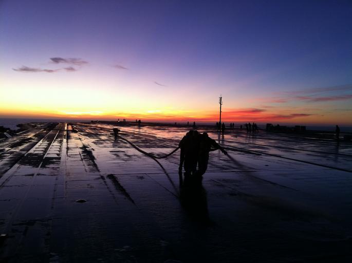 Keywords: USS Ronald Reagan Action DVIDS340070.jpg en Sailors drench the flight deck of the aircraft carrier USS Ronald Reagan with seawater during a scrub exercise A SCRUBEX is necessary to clean salt water spray off the skin of the ship to prevent corrosion Ronald Reagan is underway preparing for an upcoming deployment 2010-11-14 Photo by Petty Officer 3rd Class Alexander Tidd https //www dvidshub net/image/340070 101114-N-+++++-010 2010-11-15 05 33 ABOARD USS RONALD REAGAN AT SEA PD-USGov-Military-Navy Flight deck maintenance aboard USS Ronald Reagan CVN-76 Images from DoD uploaded by Fæ |