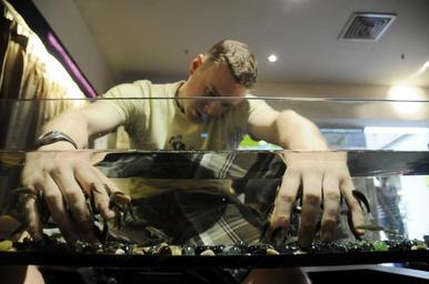 Keywords: USS Ronald Reagan crew tour Sentosa Island DVIDS125759.jpg en Damage controlman fireman Seaman Brett Malon a Sailor from the Nimitz-class aircraft carrier USS Ronald Reagan rests his hands in a fish tank full of doctor fish as part of a spa treatment while on liberty at a local mall Sailors enjoyed liberty in Singapore many different ways from Morale Welfare and Recreation-sponsored tours shopping and local cuisine The Ronald Reagan Carrier Strike Group is on a scheduled deployment in the 7th Fleet area of responsibility Operating in the Western Pacific and Indian Ocean the U S 7th Fleet is the largest of the forward-deployed U S fleets covering 52 million square miles with approximately 50 ships 120 aircraft and 20 000 Sailors and Marines assigned at any given time 2008-10-30 Petty Officer 3rd Class Chelsea Kennedy https //www dvidshub net/image/125759 081030-N-+++++-061 2008-11-03 00 21 SINGAPORE SG PD-USGov-Military-Navy Entertainment aboard USS Ronald Reagan CVN-76 Images from DoD uploaded by Fæ