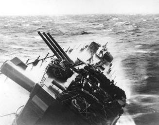 Keywords: USS Santa Fe (CL-60) during Typhoon Cobra, December 1944.jpg USS Santa Fe CL-60 rolling about 35 degrees to starboard as she rides out a typhoon encountered in the South China Sea probably on 18-19 December 1944 Note that her forward 6 47 gun turret is trained to one side to avoid shipping water through its gun ports The photograph was released for publication on 26 July 1945 http //www history navy mil/photos/images/g700000/g700024 jpg Naval Historical Center cropped 1944-12 All information on this site is in the public domain and may be distributed or copied unless otherwise specified Use of appropriate byline/photo/image credits is requested PD-USGov-Military-Navy USS Santa Fe CL-60 Typhoon Cobra 1944 Ships in heavy seas |